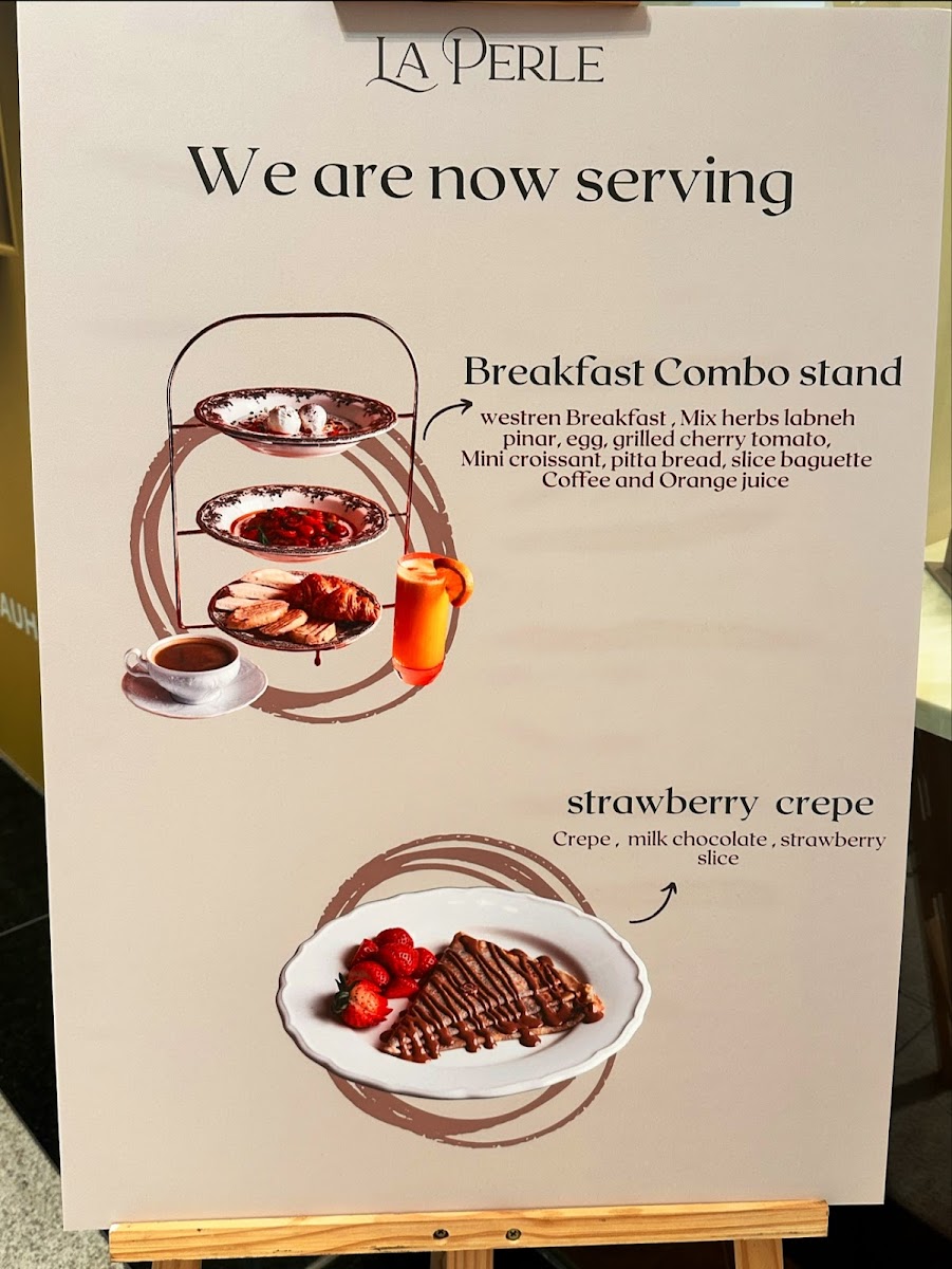 The menu at La Perle Sweets offers a variety of options primarily suited for breakfast, coffee breaks, and light meals. Visitors can expect a selection of coffee beverages, including strong, well-prepared coffees made from quality beans. In addition to drinks, the menu features light breakfast dishes and snacks such as toast options and crepes.